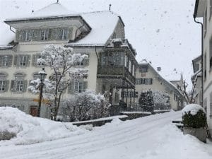 Heute bin ich in der Schweiz und wie es sich für die Schweiz gehört fallen dicke dicke Schneeflocken.