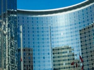 Das linke Bild – das Taxi hielt gerade an der Ampel davor, nur für einen weiteren kleinen Eindruck vom modernen Teil Pekings.